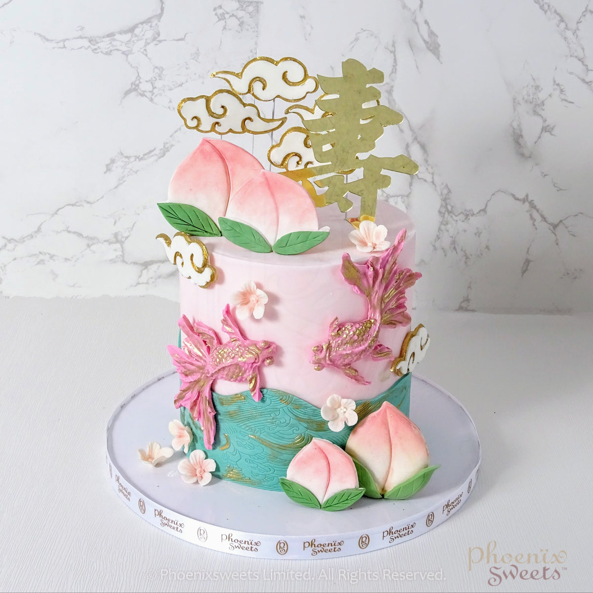 Fondant Cake - Live Long Cake With Gold Fish and Peach