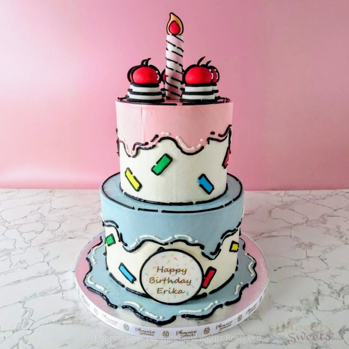 Butter Cream Cake - 2D Comic Cake (2 tiers)