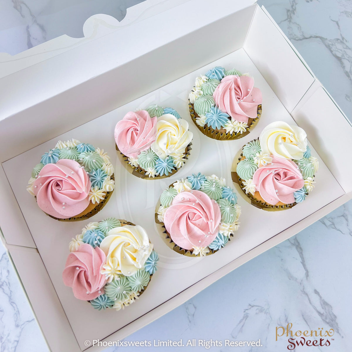 Exceptional cream art piping design.  Perfect for celebrating with ladies and bridal shower.  Available in a minimum order quantify of 12pcs for $580.