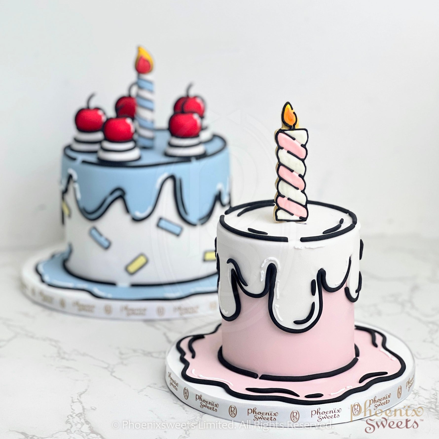 6" and 8" size are also available at: https://shop.phoenixsweets.com/products/fondant-cake-2d-comic-cake