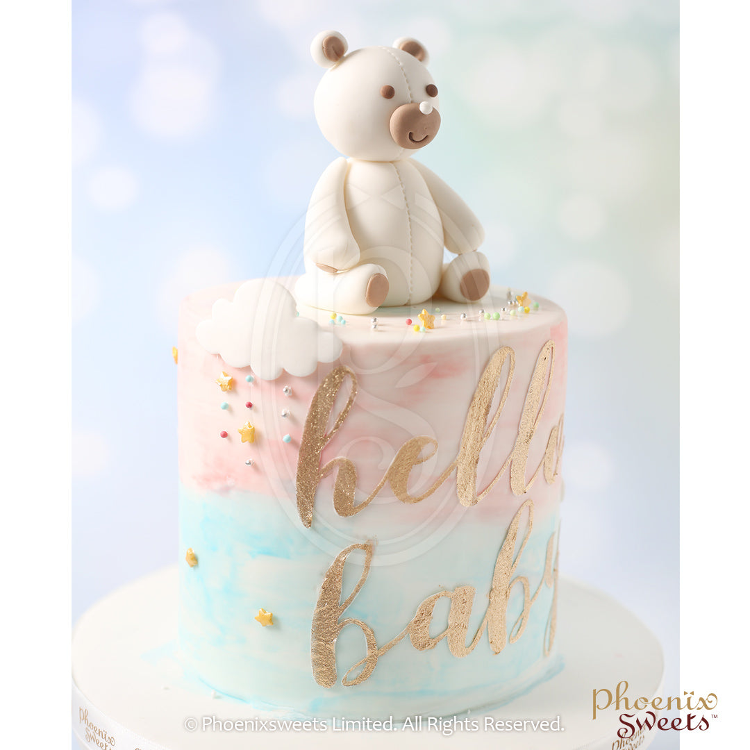 [h.f.flora x Phoenix Sweets] Bouquet & Cake Combo $2680 set 6" Fondant Cake - Hello Baby