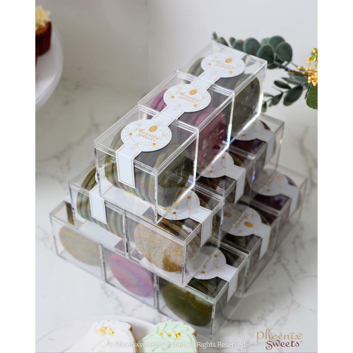 We will provide Display Unit for you to display the sweet treats. The rent is included in the package price. A Deposit will be charged when the order is confirmed. Please note that the deposit will be refunded when you return the display units and silk flower bouquets (if any) and the container bags to our Tai Kwun store in Central or studio in Lai Chi Kok within 2 days. The deposit will be deducted $50-200 per day if the units and bouquets are returned to us late.